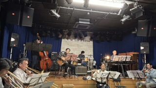 本日の参加は、フルート1人、アルトサックス3人、テナーサックス2人、バリトンサックス、トランペット4人、トロンボーン2人、ピアノ、ギター、ドラ...